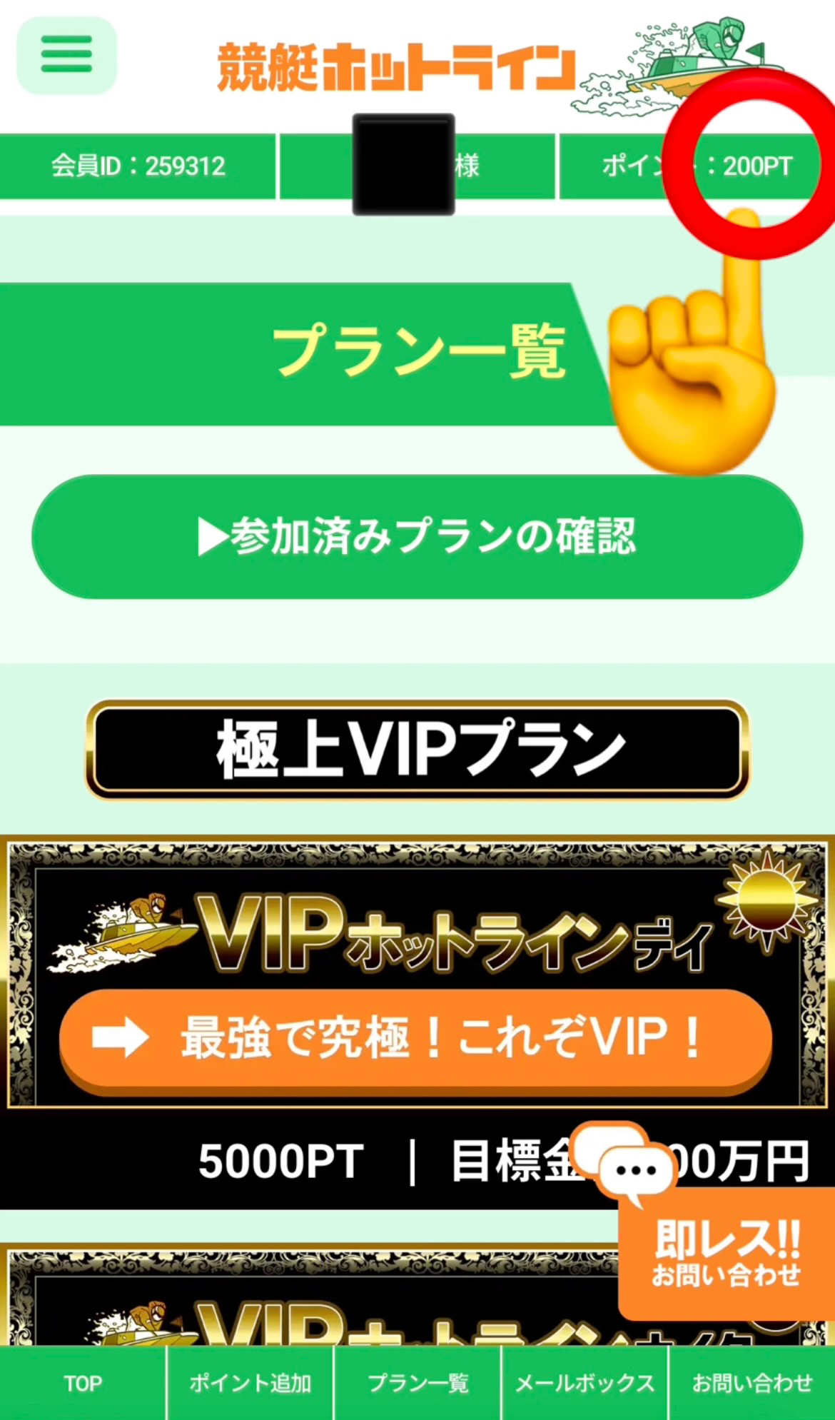 200PT付与確認したらおしまい。